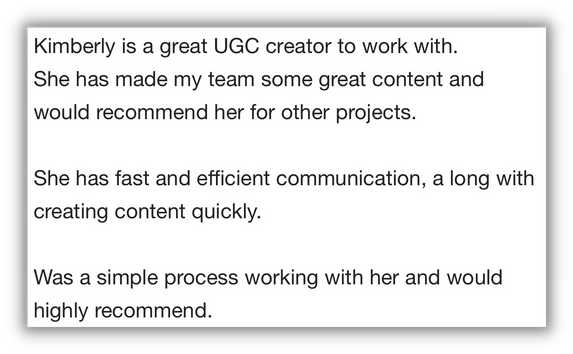 1 UGC VIDEO $350